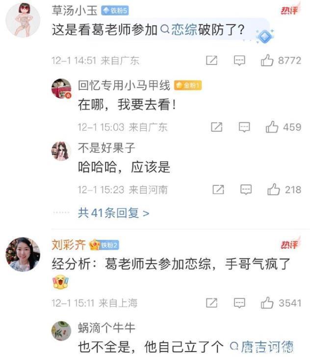 前妻参加恋综,他是对葛夕参加恋综是羡慕、嫉妒、恨的,他迫切希望自己也能受邀参加类似节目,更希望节目中所有女嘉宾都喜欢自己。可见,虽然已经和葛夕离婚,留几手胜负欲还是很强的。不少网友也是调侃留几手”是看到葛老师上恋综破防了”,也有网友称他“还给自己立了个唐吉可德的人设”