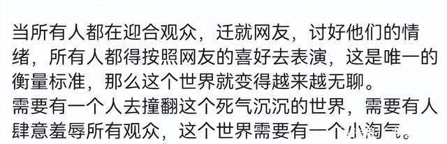 文中留几手,还吐槽现在所有的节目都在迎合观众,讨好网友,那么就会变得很无聊。所以需要一个像自己一样的人去推翻这一切。留几手还把自己比作是肆意羞辱观众的小淘气。随后上传了一张自己的“帅照”。