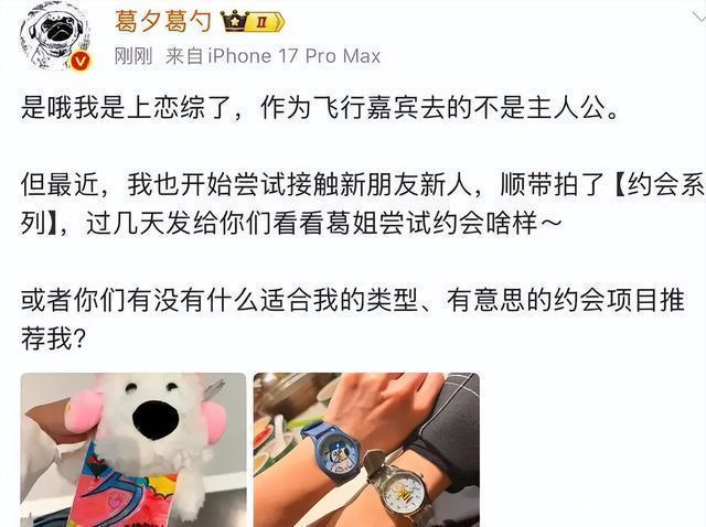 而葛夕疑似也发文回应参加恋综一事了。葛夕首先称自己是以飞行嘉宾参加的恋综,并非主人公。这一句可以说让留几手好受一点。但随后,葛夕再次放话,称最近自己也接触了新的朋友,拍了约会系列,可以说留几手听到这个消息,可能又会五雷轰顶。