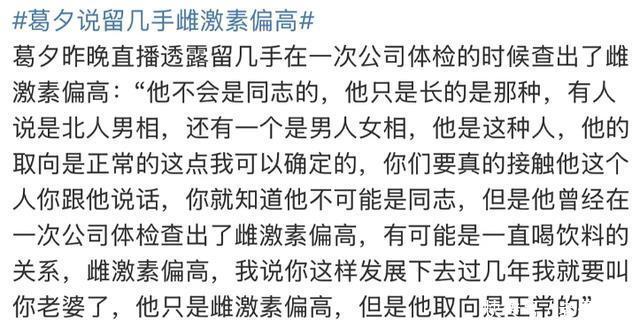 实际上,在此前的《再见爱人4》中,留几手暴露出诸多毛病,又大男子主义,又像个妈宝男。还因被葛夕暗示不能行,加上长相被嘲取向有问题。对此葛夕也是曾帮其澄清,称留几手只是雌激素偏高,喝饮料喝多了,取向是正常的。