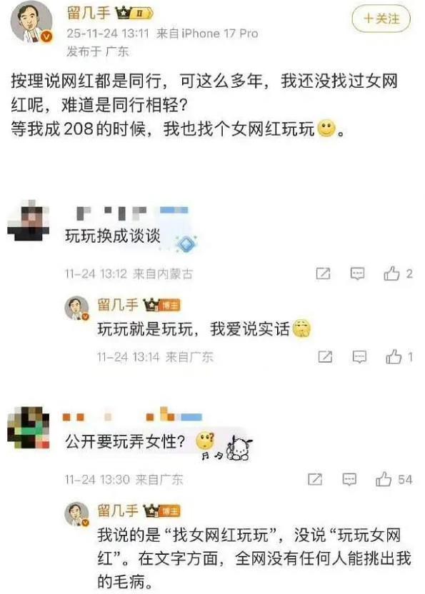 说起来留几手自从和葛夕离婚后,好像彻底放飞自我,在网上因为满嘴跑火车,引发了不少争议了。比如此前留几手称自己做网红这么多年,还没有找过女网红,所以未来有机会也找个“女网红玩玩”。这句话引发争议。